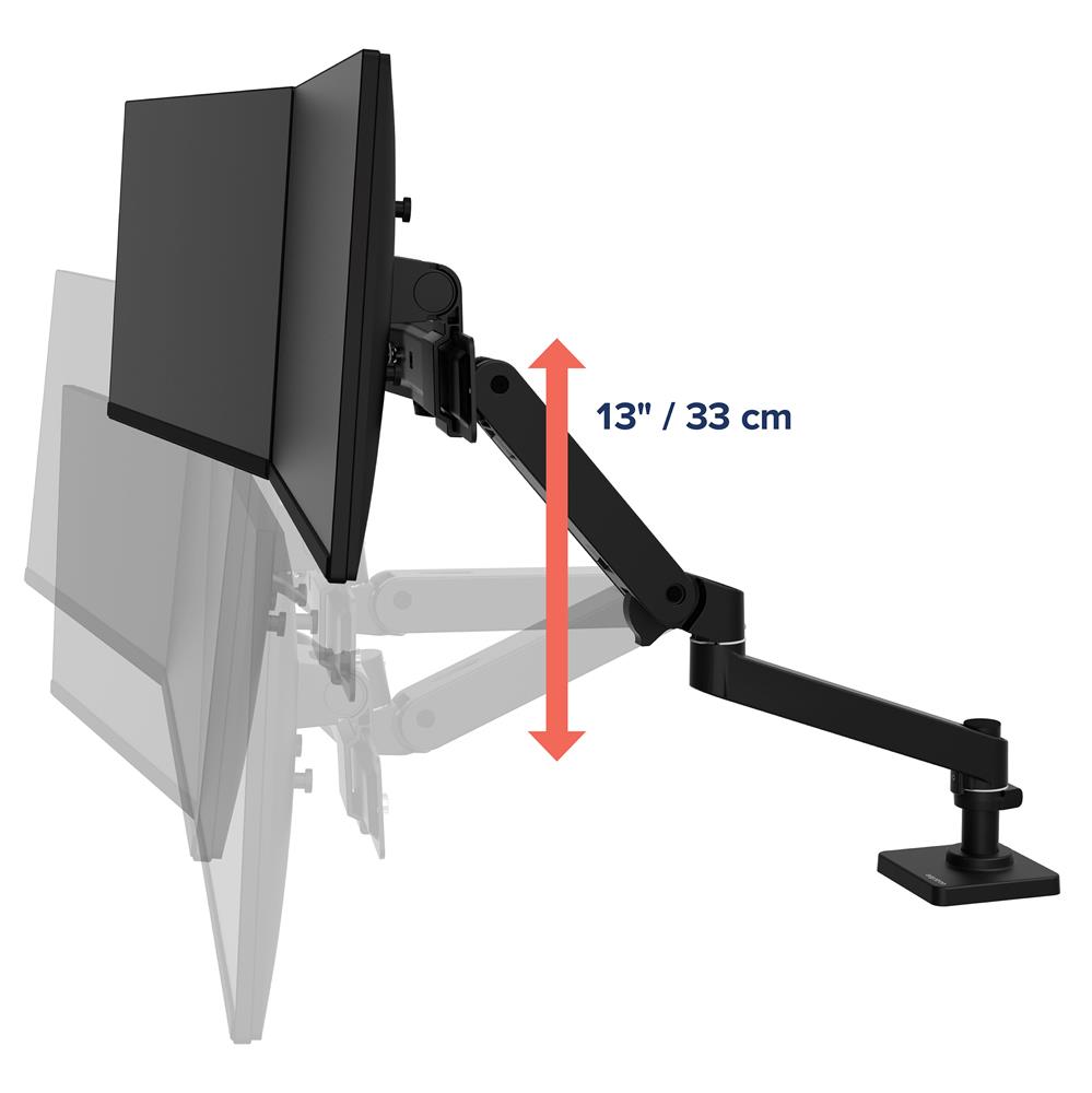 Het systeem maakt gebruik van een robuuste armconstructie met soepele beweging. Hierdoor kan de gebruiker de monitor nauwkeurig positioneren. Dit ondersteunt een correcte werkhouding en vermindert fysieke belasting tijdens langdurig gebruik.