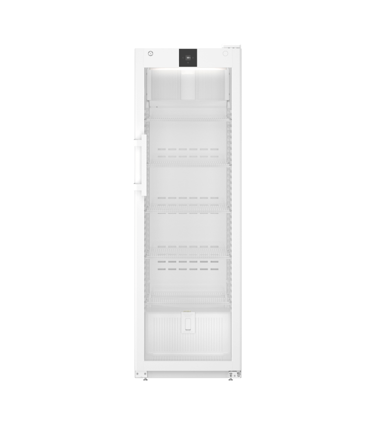 Het interieur is eenvoudig te reinigen en uitgevoerd in wit kunststof. De antimicrobiële hevelgreep ondersteunt hygiënisch gebruik. Modellen met index 11 zijn voorzien van een isolatieglasdeur met LED plafondverlichting. Netwerkintegratie via WLAN of LAN is optioneel beschikbaar.