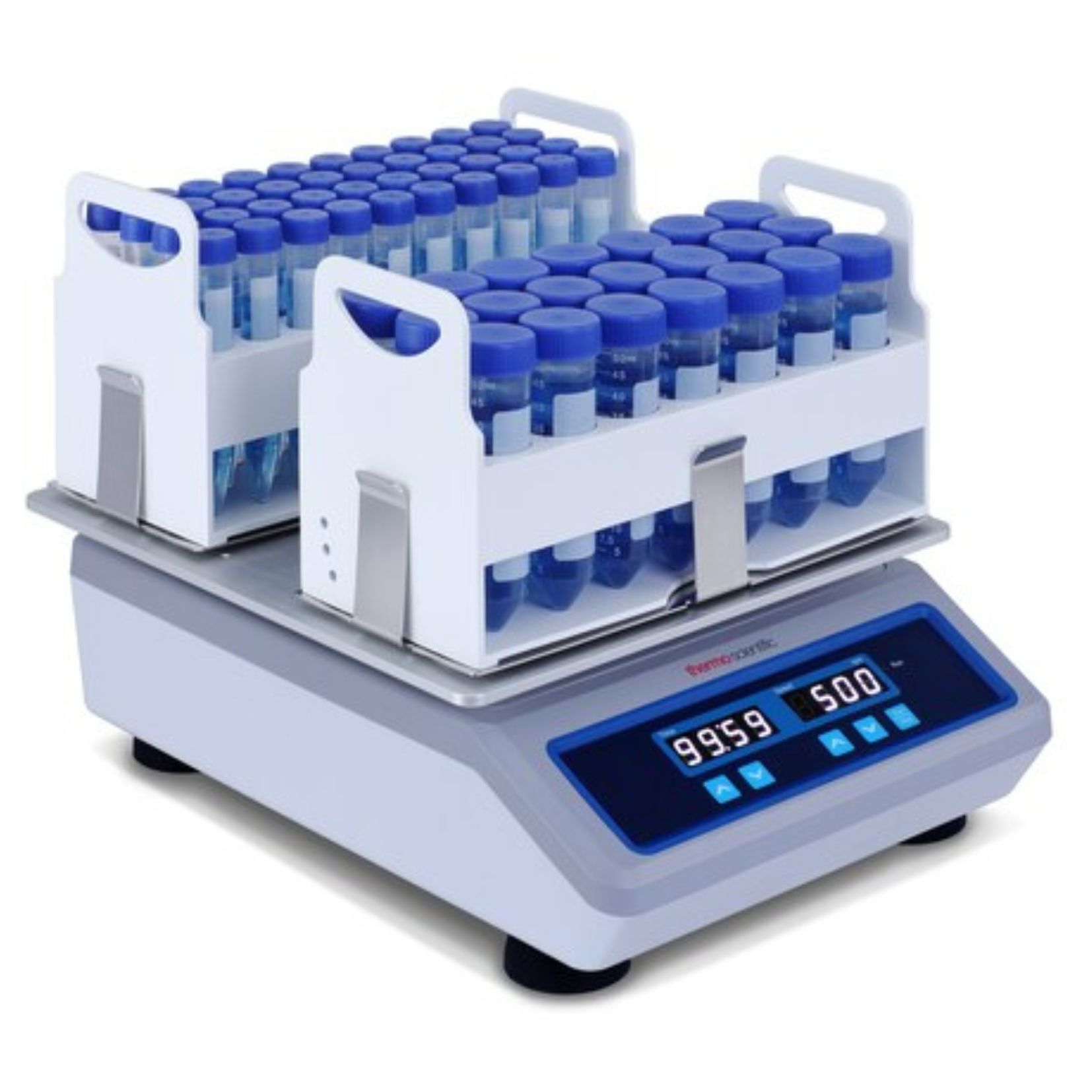 De rotator werkt met een orbitdiameter van 10 mm en een snelheidsbereik van 50 tot 500 rpm. Bij lage snelheden biedt het systeem een hoge nauwkeurigheid, wat belangrijk is voor gevoelige monsters. De digitale bediening maakt continue werking of gebruik met timer mogelijk, afhankelijk van het protocol.